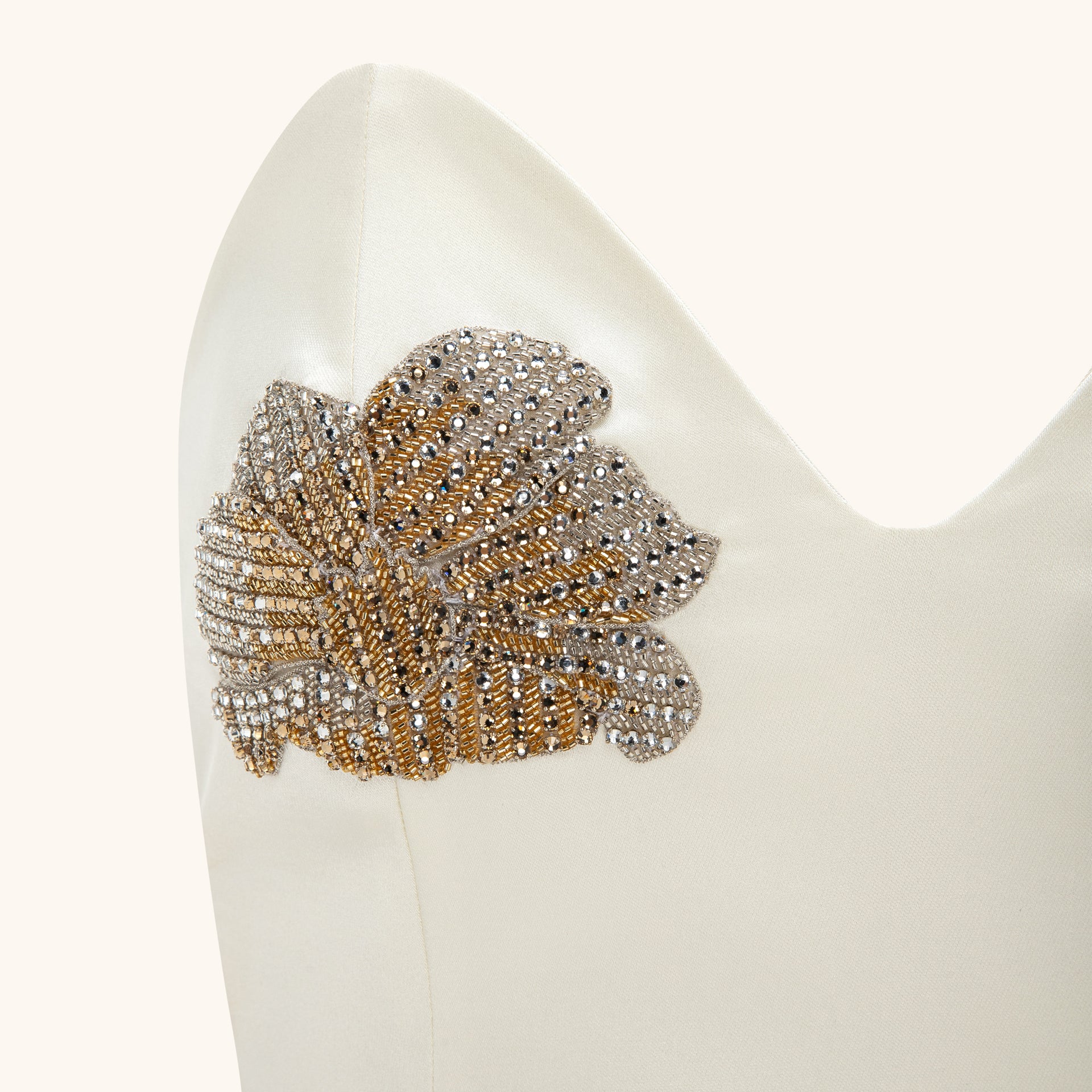 Dhs. 3,200.00Crafted from high-quality satin, featuring intricate handmade floral embroidery on the front and an adjustable corset back.