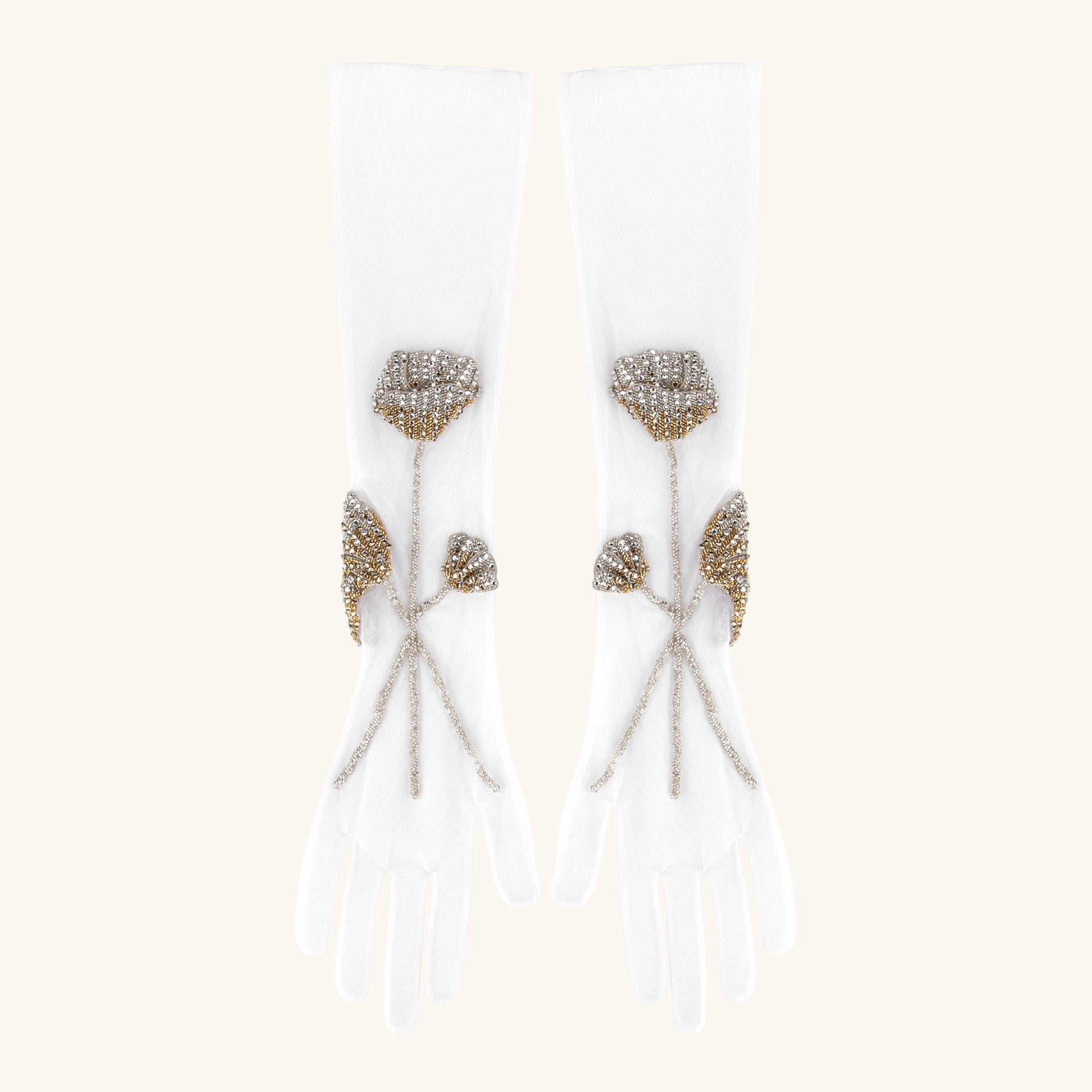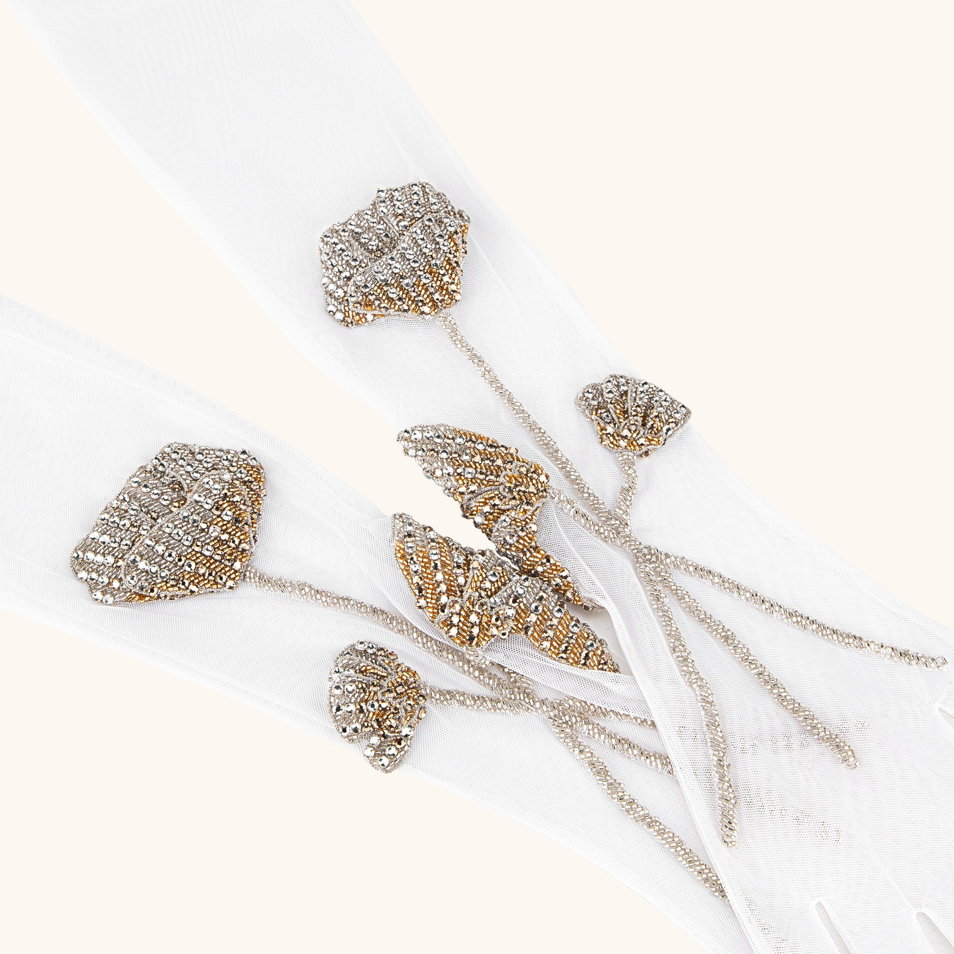 Crafted from soft mesh fabric with handmade floral embroidery.