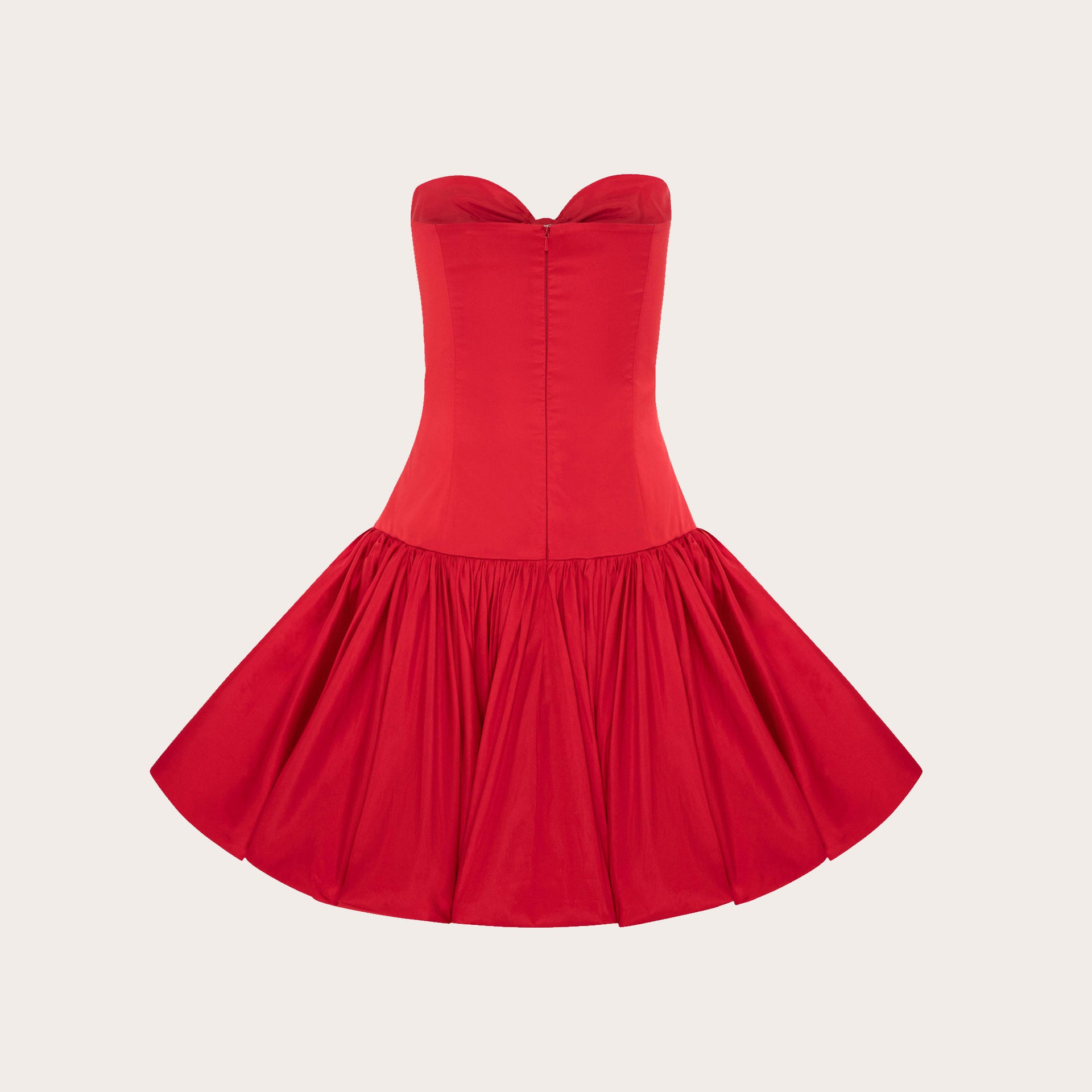 Dhs. 2,400.00A mini balloon dress in high-quality silk taffeta, designed with a fitted bodice and cut-out details accented by Swarovski crystal rings.