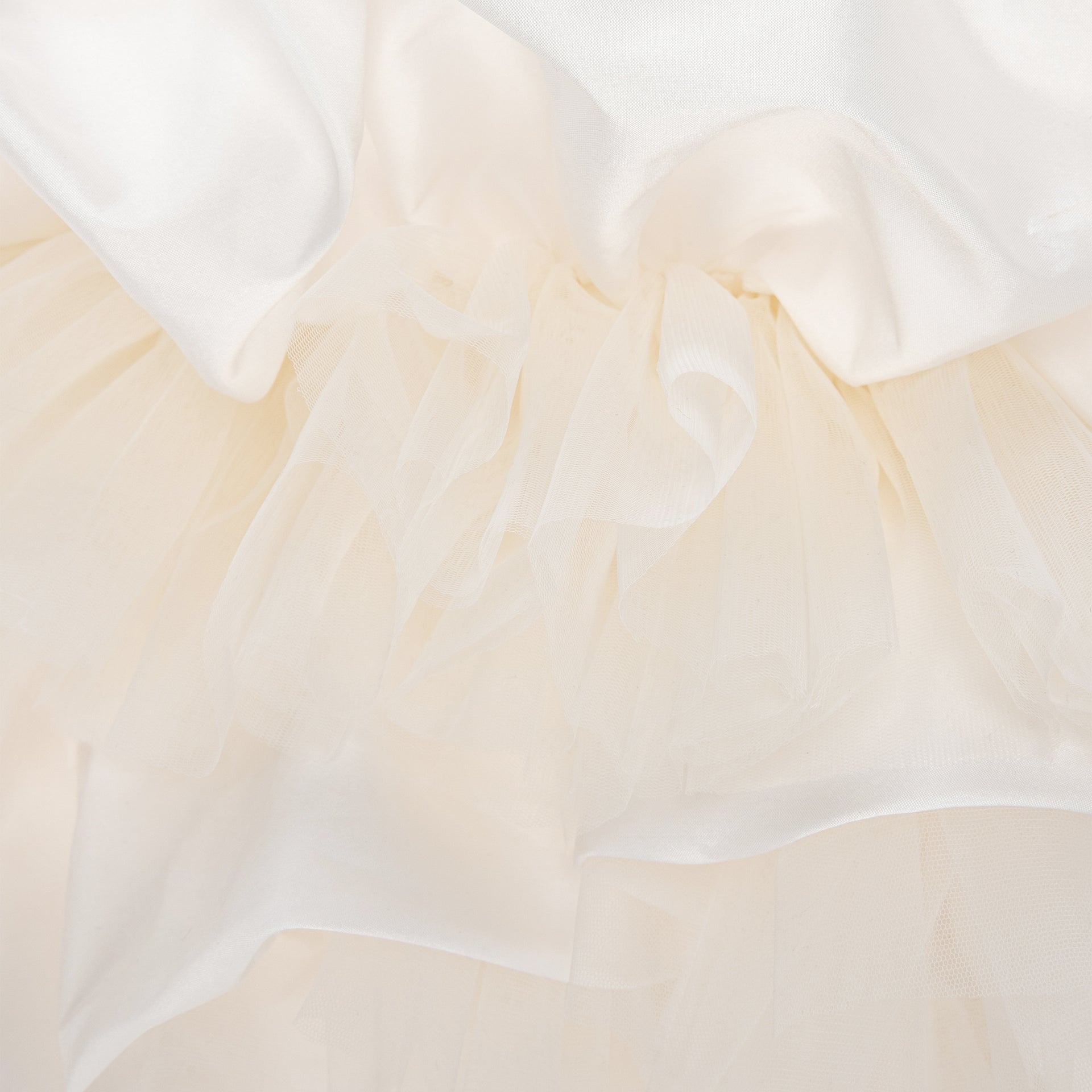 Dhs. 4,400.00Crafted from high-quality silk taffeta, featuring a fitted bodice that flares into a rose-shaped skirt with layered ruffles and tulle.