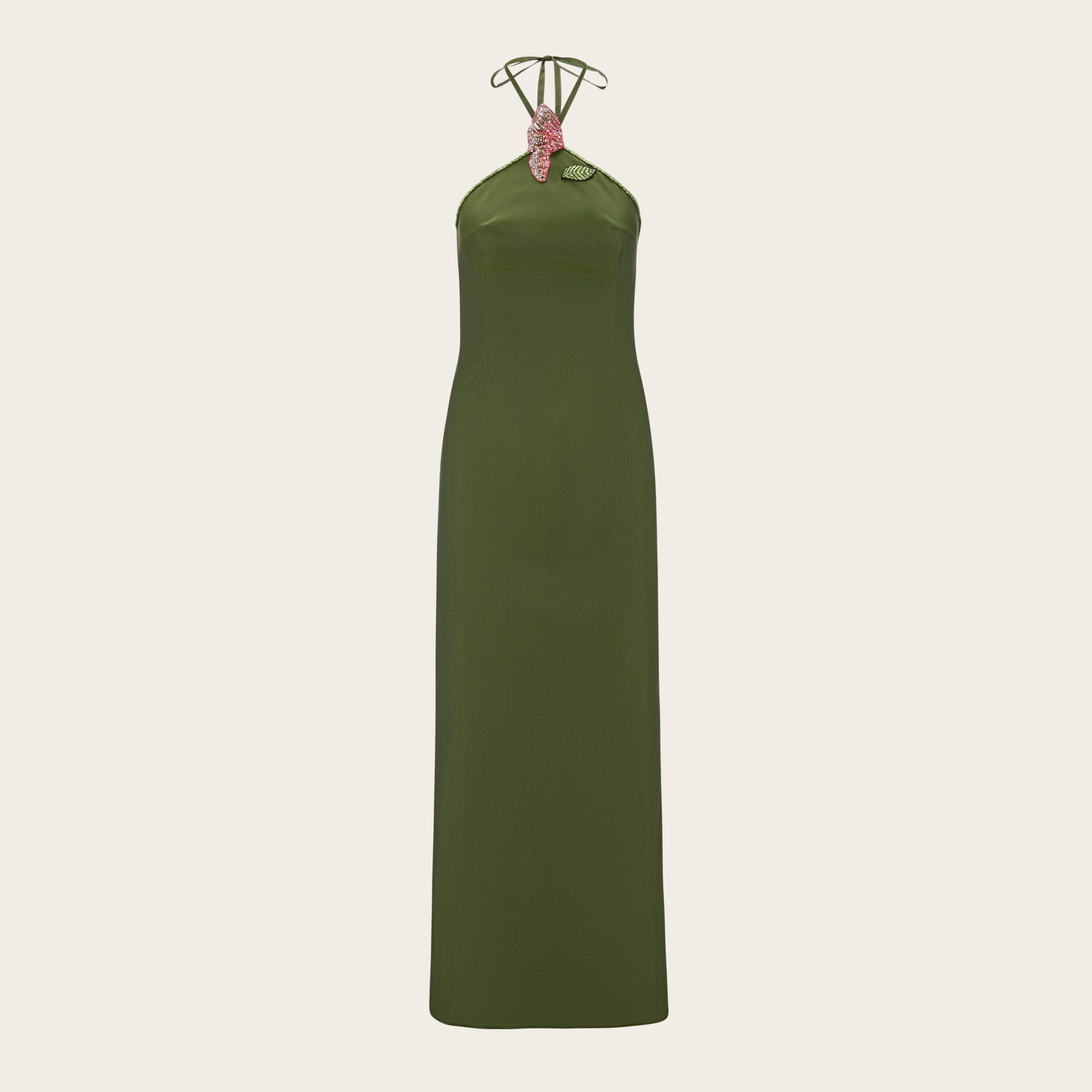Dhs. 3,000.00Crafted from high-quality taffeta and has a fitted silhouette. The neckline holds a hand embroidered Poppy flower.